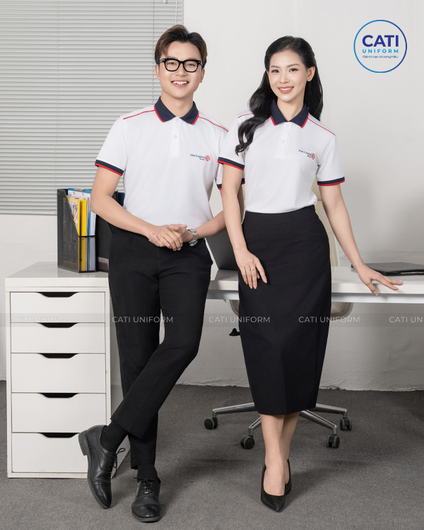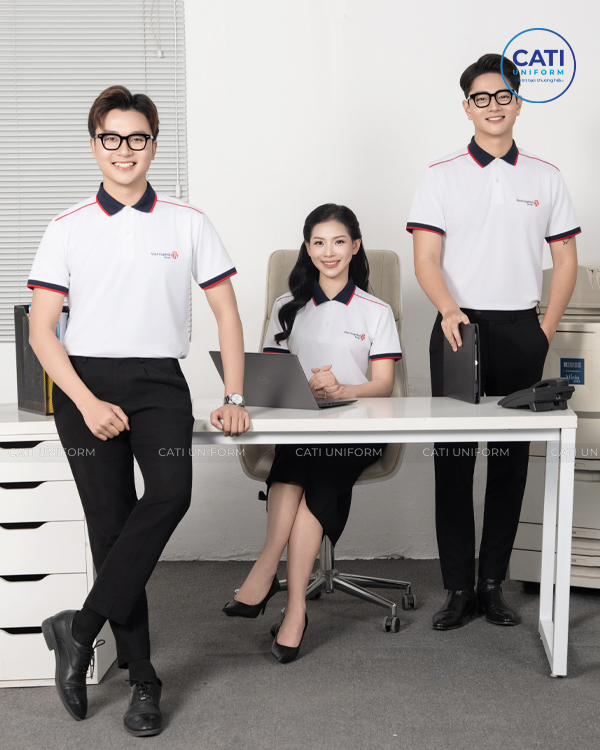 Mẫu áo thun đồng phục màu trắng trẻ trung sang trọng