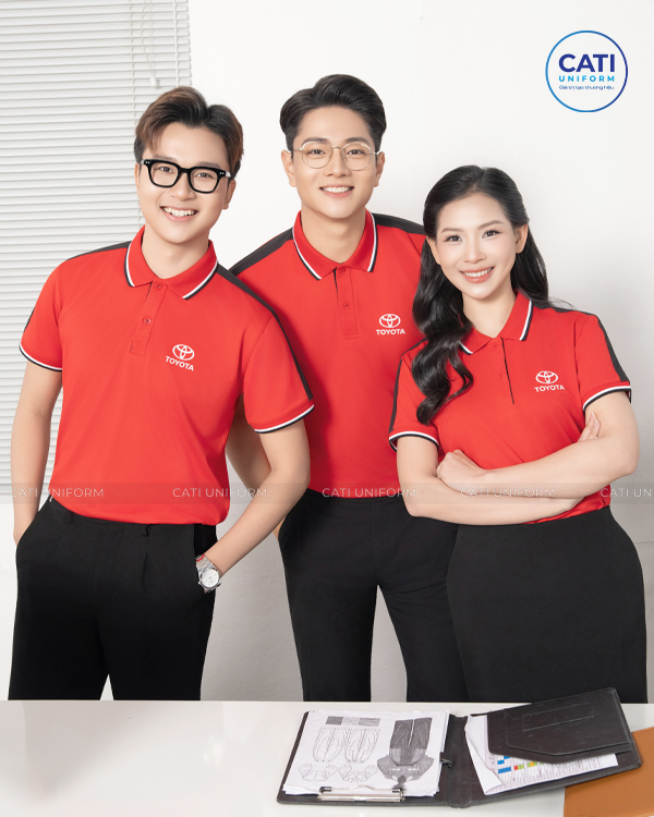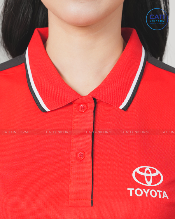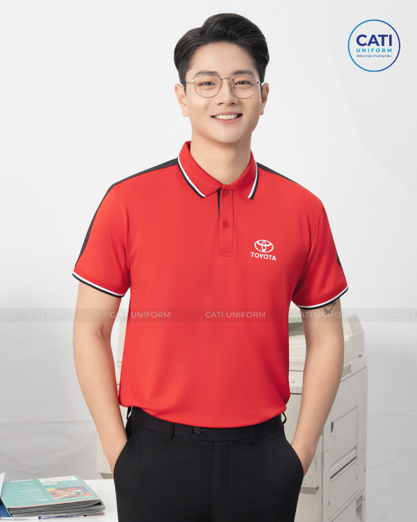 Áo Thun Đồng Phục Văn Phòng Toyota kết hợp màu đỏ tươi phối đen trên cầu vai tạo điểm nhấn. Chất liệu Lacoste USA Cao cấp. Thiết kế Miễn phí theo yêu cầu. Có bảng size nam và nữ để Khách hàng lựa chọn.