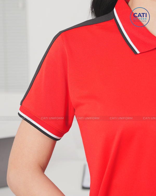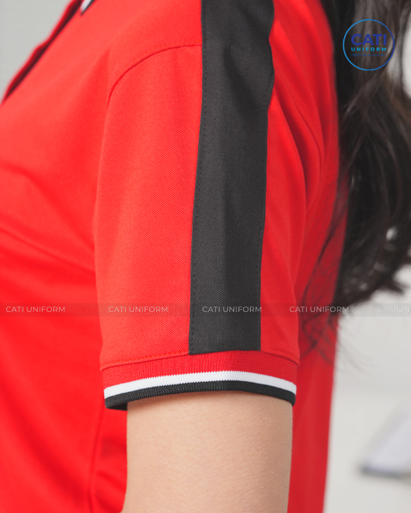Áo thun đồng phục văn phòng với thiết kế màu đỏ phối đen tạo sự nổi bật, cá tính khẳng định sức hút, rất thích hợp cho các doanh nghiệp vừa và nhỏ nhằm quảng bá thương hiệu trong mắt khách hàng.