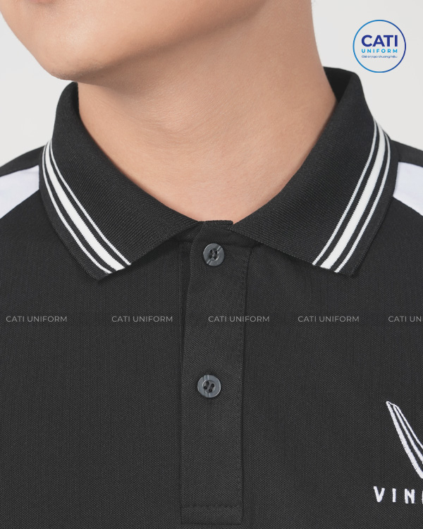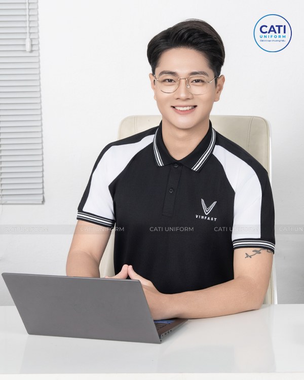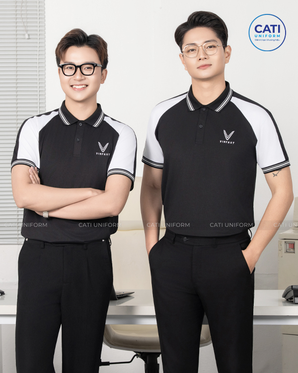 ÁO THUN ĐỒNG PHỤC VINFAST được lựa chọn vải màu đen phối trắng nổi bật tạo nên sự độc đáo, thông minh đầy bản lĩnh giúp đưa hình ảnh công ty đến ấn tượng đặc biệt trong mắt khách hàng.