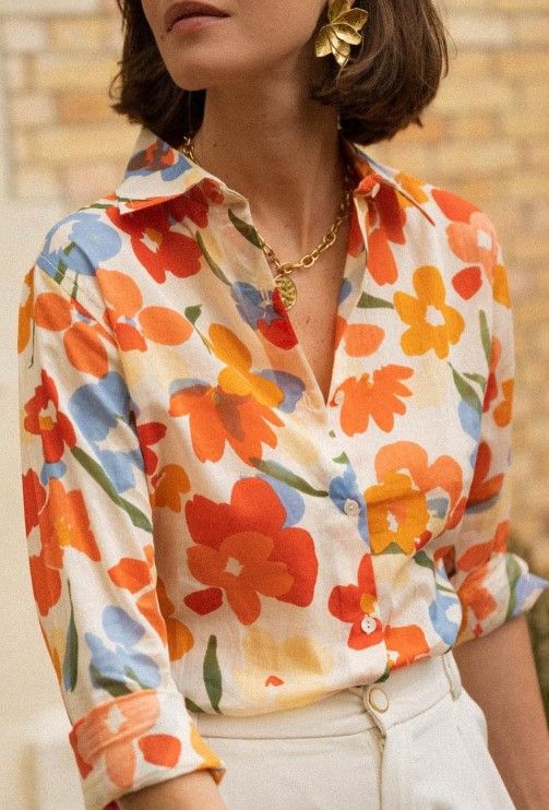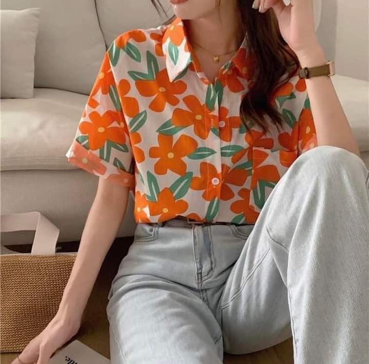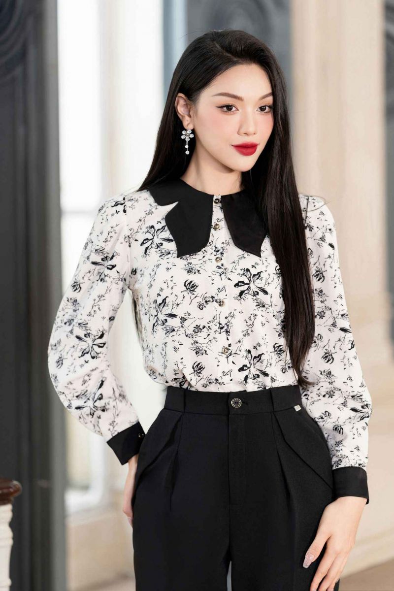 Nếu như các nàng đã chán với mẫu áo sơ mi form rộng cá tính trên thì có thể thay đổi mẫu hoạ tiết hoa. Đặc biệt với hoạ tiết hoa chìm trên áo sẽ giúp gợi nên phong cách của các quý cô sang trọng, tinh tế và khéo léo. Khi kết hợp item này với quần tây hay chân váy xoè sẽ toát lên vẻ đẹp hiện đại và năng động.
