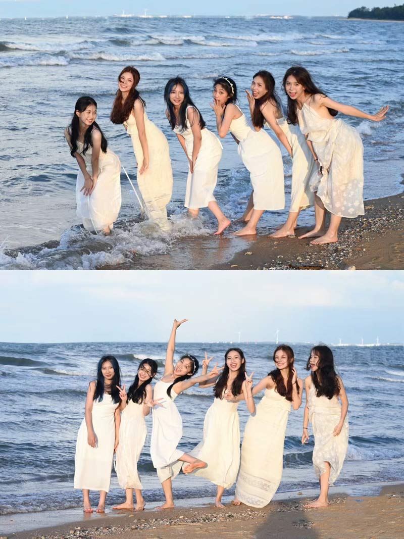 Mẫu váy đồng phục nhóm đi biển tông màu trắng