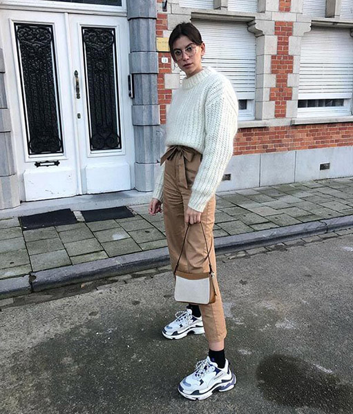 Phong cách thời trang hiện đại mà vẫn ấm áp khi kết hợp áo len và quần kaki.